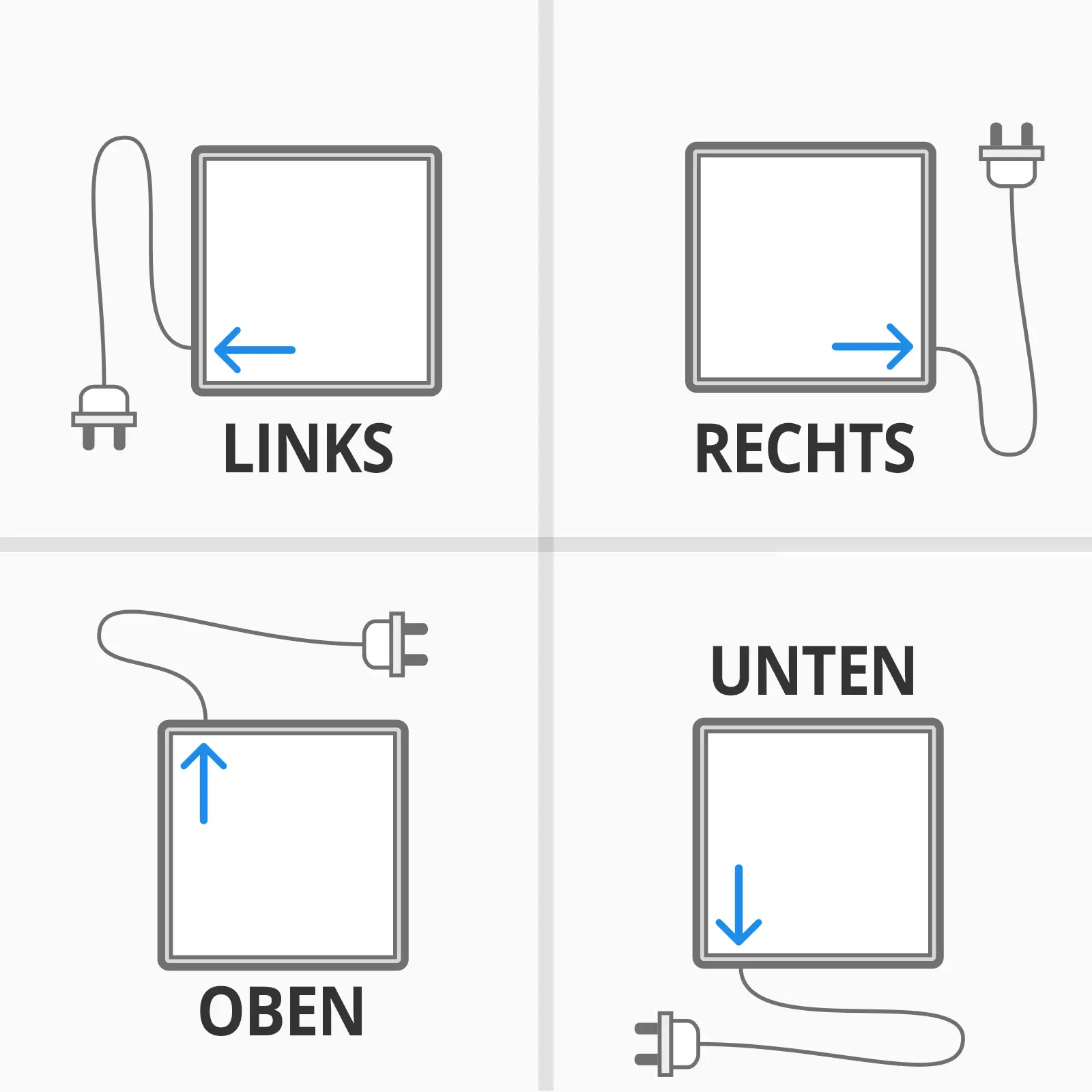 - Stecker jeweils 6cm von der Ecke entfernt (siehe Grafik)