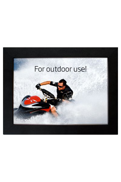 Einseitiger LED-Leuchtrahmen mit einem glänzenden Licht - für den Innen- und Außenbereich. 12 V Transformator. 33 mm Snap-Profil, schwarzlackiert mit Strukturlack. Ecken auf Gehrung. Einfach zu montieren und der Motivwechsel ist leicht. Der LED-Leuchtrahmen kann vertikal und horizontal montiert werden.